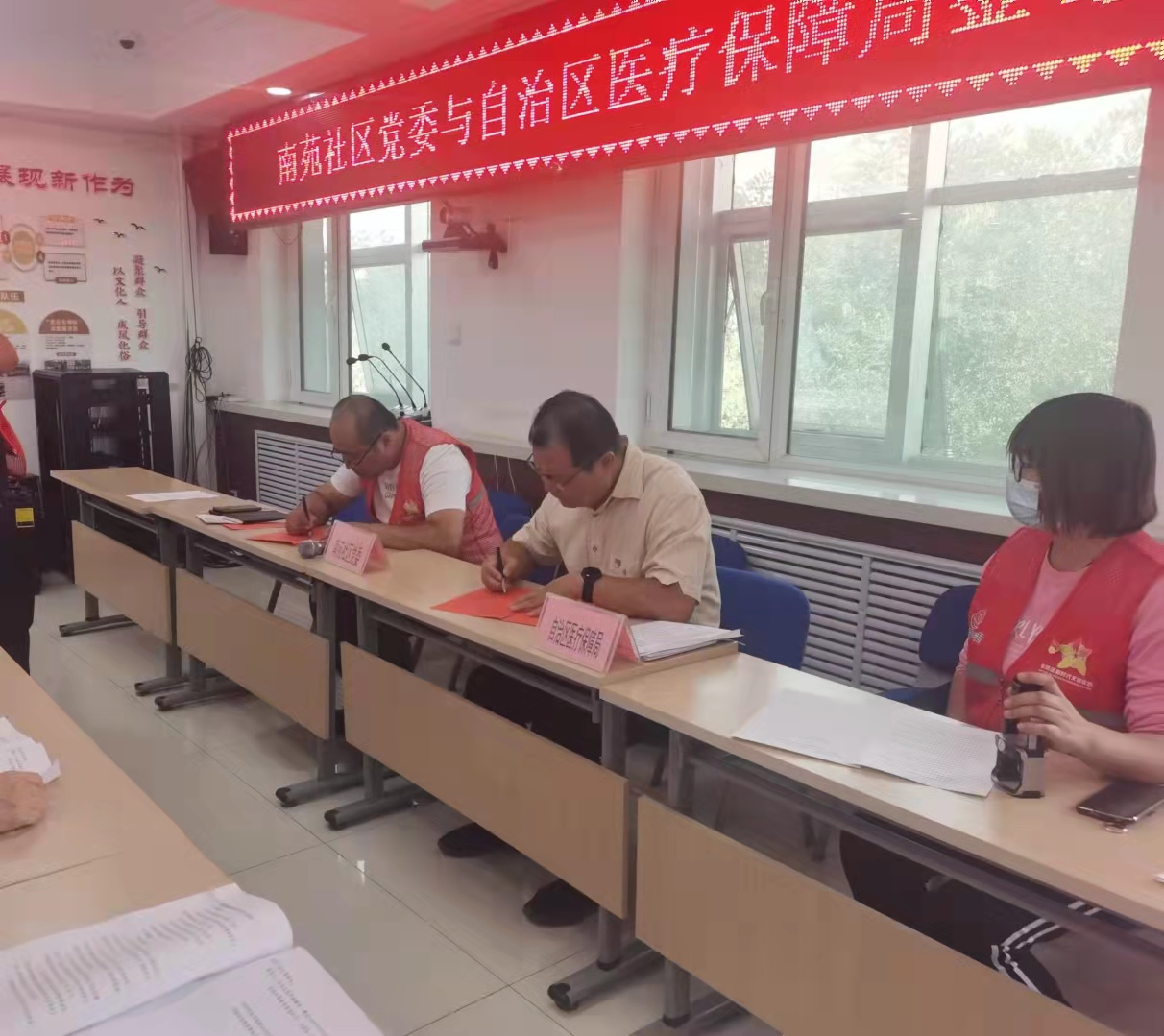 禁漫天堂 党组成员、副局长王晓光同志和南苑社区党委书记朱紫云龙同志分别介绍了两个单位的基本情况,经过前期充分的沟通协商,双方明确了合作共治资源清单、治理需求清单、服务项目清单,现场签订了共驻共建协议书。签订完毕后禁漫天堂 向社区人员发放医保政策宣传手册并进行政策解读。