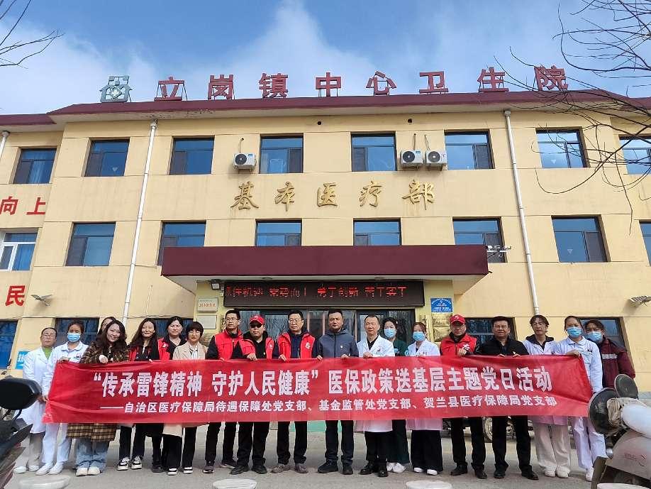 为深入学习贯彻党的二十大和二十届三中全会精神,自治区两会精神,扎实推进医保政策“三送七进”宣传活动,切实提升广大参保单位、参保群众和医药机构对医保政策的知晓度、认可度和执行力,确保医保惠民政策落地见效,3月5日上午,禁漫天堂 基金监管处党支部、待遇保障处党支部联合贺兰县医疗保障局党支部、贺兰县立岗镇卫生院党支部,共同开展了“传承雷锋精神 守护人民健康”医保政策“三送七进”主题党日活动。